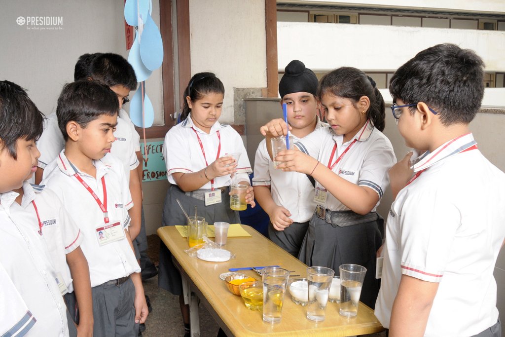 Culmination is tagged as an important aspect of experiential learning as it isn't just the conclusion, but the end result of all the achievements. Hence, keeping in mind the importance of culmination and pedagogy of Presidium, our young students of grades 4 and 5 participated in the Science culmination recently. The motive of the culmination was to develop scientific temper in our Presidians. Packed with full zeal and zest, the students showcased their learning to all by either explaining or demonstrating varied concepts of 'plants', 'food', 'human body', 'animals' and 'water'. Pleased to spot their own displayed work, they were anxious to pose questions to the visitors, play games, perform experiments that boosted their morale, thereby expanding a lot of knowledge by LEARNING BY DOING.